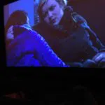 Sobre las fans, la mayoría de nosotras nos conocíamos de los foros y de habernos encontrado en eventos previos, ya eramos amias de Twitter…Estábamos divididas en pequeños grupos, pero de alguna manera terminamos conectadas, lo que fue genial. Uno de los grupos, el que iba de parte del foro de Jemma, había mandado hacer camisetas y le dieron un par a Kasia y Lucy que de inmediato se las pusieron. Y no se las quitaron. También las llevaban puestas cuando hicieron las presentaciones en el cine.