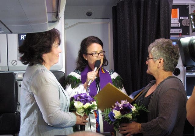 Y si ya vas a ser la primera habrá que hacerlo de manera original ¿no? Si están buscando lugar para su boda chicas, igual deberían seguir los pasos de Lynley Bendall y Ally Wanikau que decidieron casarse ¡en un avión!