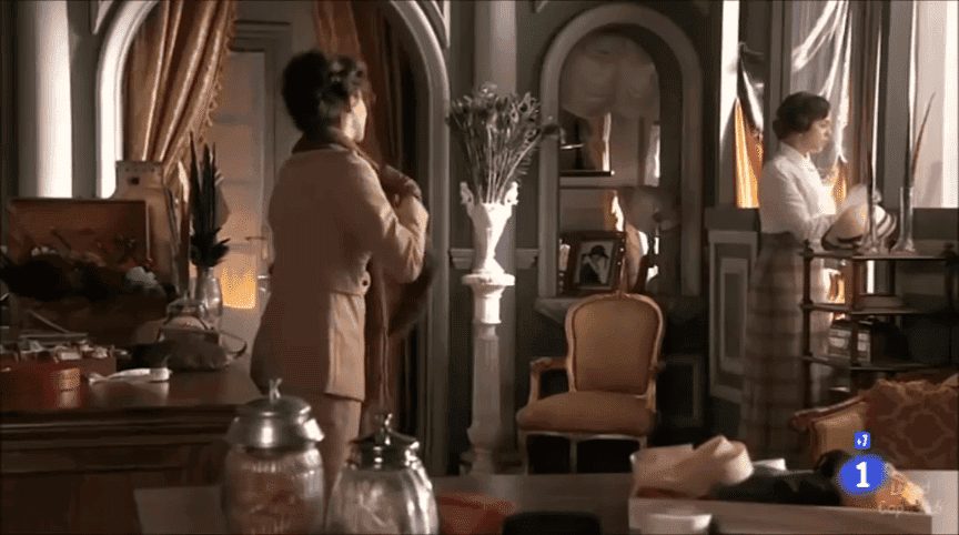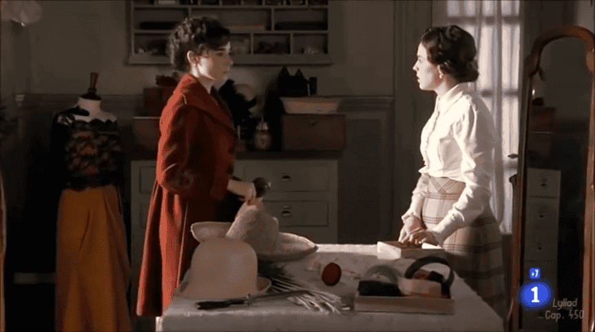 A la mañana siguiente, Blanca sale de la casa familiar cuando se encuentra con su hermana Celia. La rubia le dice que va a misa, que si le acompaña (como si no tuviese otra cosa que hacer, ¡no te digo!). La maestra le dice que no puede, que va a escribir, de echo viene de comprar papel. Blanca le pregunta que si pasó algo la tarde anterior, ya que las estuvo esperando para ver los diseños de Cata. Celia le da una excusa, problemas en la tienda. Para Blanca, esa reunión también era una excusa para conocer un poco mejor a la amiga de su hermana. Parece ser que de verdad ha cambiado y quiere ver a Celia feliz. Se ha dado cuenta que habla mucho de ella, como cuando empezó su relación con Aurora. La maestra le hace un resumen de la situación y la rubia le aconseja que hable con ella y averigüe qué es lo que ha ocurrido para su cambio de actitud.