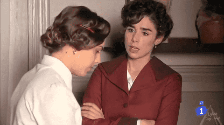 A la mañana siguiente, Cata está esperando a Celia en la puerta de su casa. La maestra sale, la costurera quiere darle una explicación de lo que vio ayer, pero Celia ya sabe qué es lo que pasa. Cata insiste, no es lo que ella imagina. Celia le dice que le podía haber dicho que había vuelto con el bebé, no pasa nada, es su vida, así que le dice que lo mejor es que no se vean más. Se da media vuelta para irse cuando Cata explota: “¡¡Benito me está chantajeando!!”. Celia flipa. Cata, ya que se lo ha dicho, lo suelta todo de corrillo: las sorprendió sin ellas darse cuenta; amenaza con airearlo y contárselo a los padres de la costurera… La pobre creía que con ceder una vez era suficiente, pero no es así, el CERDO no se cansa nunca y Cata no sabe cómo pararle los pies. Celia ata cabos, fue Benito quien la prohibió que siguieran viéndose y le echa en cara que no se lo contara en su momento. La maestra se ofrece en ayudarla en todo lo que pueda, pero nada más. Con lo que le costó dar el paso, ahora no se siente preparada, sobre todo porque la costurera no ha confiado en ella.