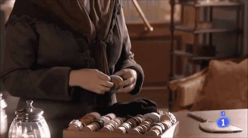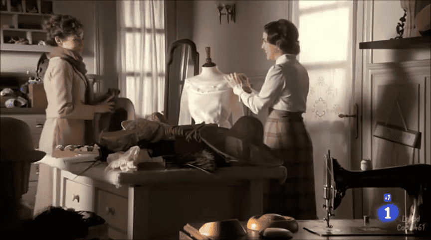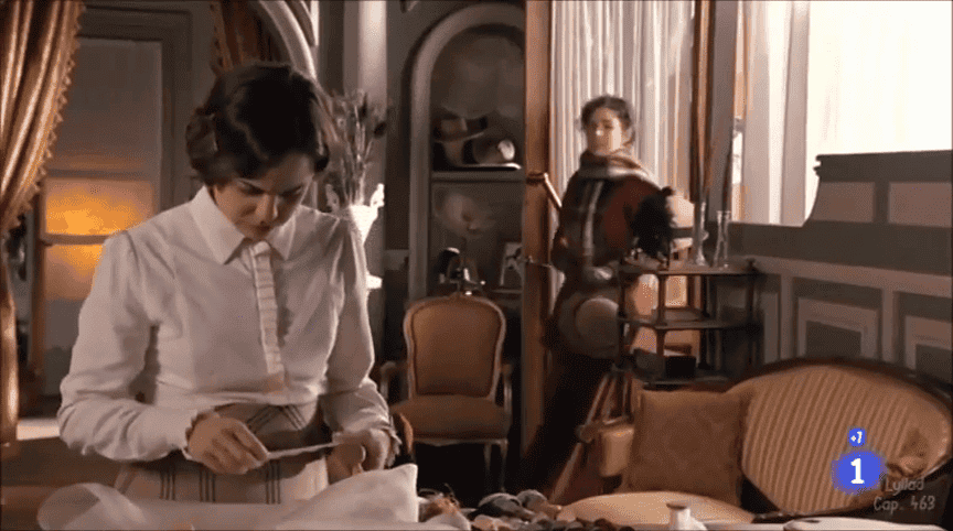 medio rebajarse la costurera, la futura nueva doña del comercio le dice que le