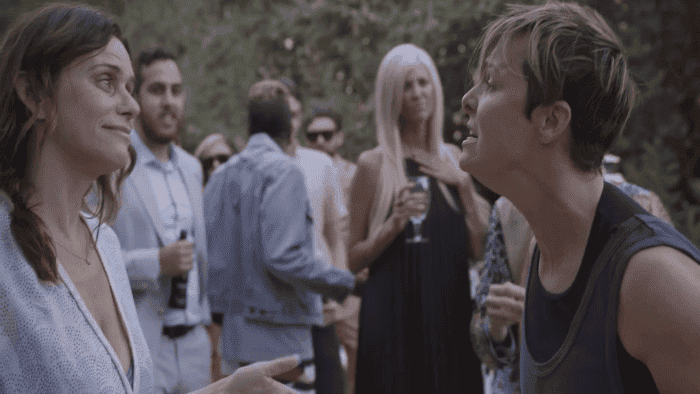 Y así, que os juro que esto me ha dado congoja porque de verdad que la mujer está pasándolo francamente mal. Aunque no creo que tenga derecho a joderles la fiesta así pero es que… vaya tela todo. Al final tira la tarta a la piscina, manda a todos a la mierda y se pira de allí. Ali intenta abrazar a Sarah, pero se la quita de encima porque Sarah también está en una época difícil después de todo. ¡Qué bien! ¡Otra serie haciéndonos infelices! Bueno, yo confío en que Ali se venga a este lado de la acera, ya está a medio camino en bollerismo estético.
