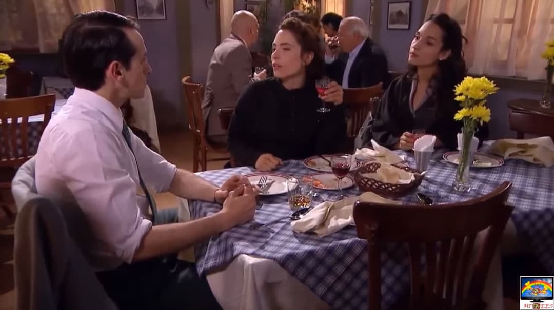 La pobre Mechita, está lidiando como puede con la incomodidad y la vergüenza, mientras que el hombre insiste en que debe haber alguien por ahí que le guste, que tiene que haber por ahí un chiquillo. Y le dice: "Debe haber por ahí alguien con quien te guste pasar el tiempo, que te haga sentir maripositas en la huata (panza, o estómago), ¡por favor dime que sí!" Pero por la cara que pone Merce, creo que todas nosotras ya nos hacemos a la idea de que no está pensando en un chiquillo… que esa cara tiene nombre, pero de mujer. Ernesto, también se dio cuenta de que Merce pensó en alguien, así que le pregunta en quién piensa y si lo conoce… aquí todas nos sentimos identificadas con Merce, quién lanza señales de S.O.S para que alguien interrumpa, y por primera vez en su vida, Horario hace algo bueno y aparece para interrumpir la escena y rescatar a su hermana. Menos mal que Horacio apareció, que Merce no tenía muchas opciones para responder.