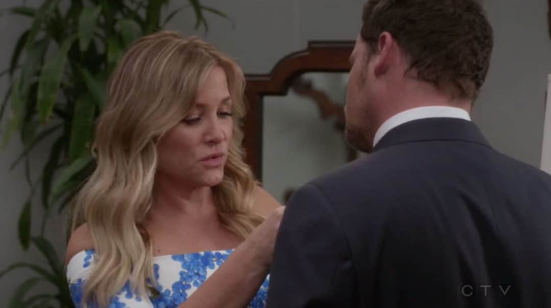 Más tarde vemos a la rubia llegar a la boda junto a Sofia y ponerse a platicar con Alex mientras este termina de arreglarse. Y quien dice platicar dice ponerlo de los nervios porque ella está super nerviosa y no para de hablar de catástrofes matrimoniales.