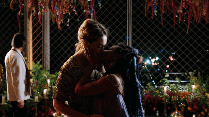 Tras este final, llega la celebración. Y es realmente lo que esperamos, lesbicanarias. Porque ¿qué queda? ¿Qué creéis? ¿No queda acaso una boda? Pues sí, la de nuestras Nomi y Amanita. Es ya meses después cuando ha pasado todo el batiburrillo, todos están a salvo y han alquilado la Torre Eiffel. No es así exactamente, es más que como han salvado al mundo de Whispers y demás cazasensates tienen contactos en las altas esferas políticas y les han dejado casarse allí mismo. Ay, el tráfico de influencias… Pero en fin, que es lo de menos porque las Wachowski se han liado la manta a la cabeza y han arreglado la vida de todos los sensates en esos meses y llevado a la boda a cada personaje algo relevante en la vida de cada sensate. Familia y amigos. Un detalle bastante bonito en mi opinión y que ejemplifica lo que nos quieren dar: un final totalmente fanservice. Es lo que nos deben. Y por eso les damos gracias.