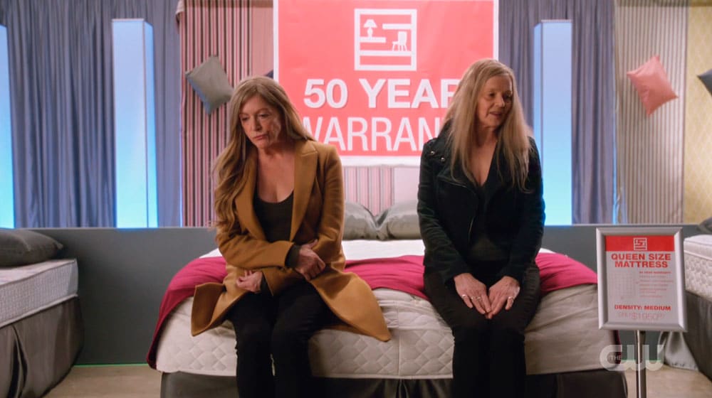 El segundo tiene garantía de 15 años y cuando se sientan a probarlo les salen canas, pero no verdes, de las normales. Se ve que el colchón las envejece el número de años de la garantía. ¡Miedo! Sara concluye que, como este es el purgatorio de Ava, tiene que tener algún problema con envejecer, pero su novia le confirma que no, que el problema lo tiene con envejecer con ella. ¡Ala!