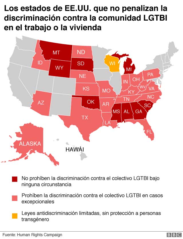 Esta decisión debería ser trascendental para millones de trabajadores que pertenecen al colectivo LGBTQ y que trabajan en estados en los que su derecho a no ser discriminados no existe. En especial en Alabama (AL), Carolina del Sur (SC), Dakota del Sur (SD), Georgia (GA), Michigan (MI), Misisipi (MS), Montana (MT), Oklahoma (OK) y Wyoming (WY). Estados en los que no existe ninguna protección contra esta clase de despidos.