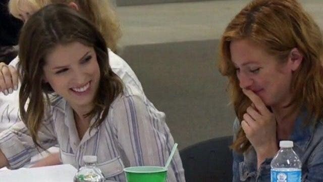 Anna Kendrick y Brittany Snow leyendo el momento en el que finalmente sus personajes se lían