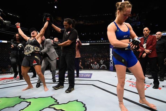 Pero pasemos a la noticia que más me gustó y me conmovió. Todas las fanáticas de la UFC y MMA me darán la razón; la pelea más esperada entre Amanda Nunes (Primera peleadora abiertamente lesbicanaria) y Ronda Rousey fue ¡EPICA! Al segundo 48 Nunes logra el triunfo en contra de Rousey.