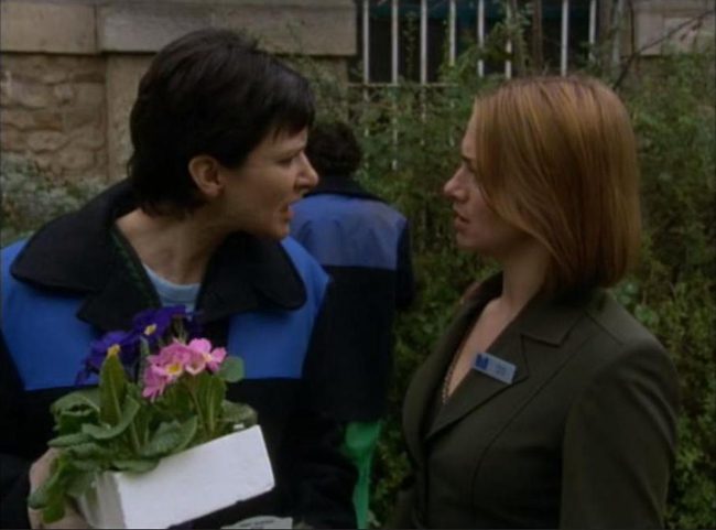 Y ahí se genera el típico conflicto de siempre en estos casos de celos enfermantes: ambas hablan de falta de confianza. La celosa de no ser informada ("no soy importante en tu vida como para contarme las cosas") y la "sospechosa" de no deberle explicaciones a la primera ("no tienes derecho a desconfiar de mí"). Tan tradicional discusión, acaba con malas caras por ambas partes que, verbalizándolas, tendrían la siguiente traducción: "Ahí te quedas" vs "Que te den". Todo muy romántico. Pero, señoras, lo importante es que acabamos de asistir a la primera y verdadera pelea de pareja entre nuestras protagonistas. Y eso, debo decir, es un síntoma de que la relación se consolida: Hay que ser pareja para discutir de determinadas maneras e intensidades.