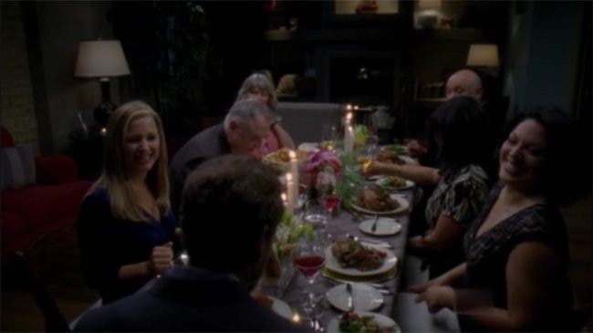 Callie entonces voltea a ver a su madre y dice que deberían bendecir la mesa antes de comer en un intento de hacerla sentir más en ambiente. Todos acceden y la morenaza invita a su madre a presidir el rezo. Mark se hace un poco pato pero una sola mirada de Callie lo devuelve a su lugar.