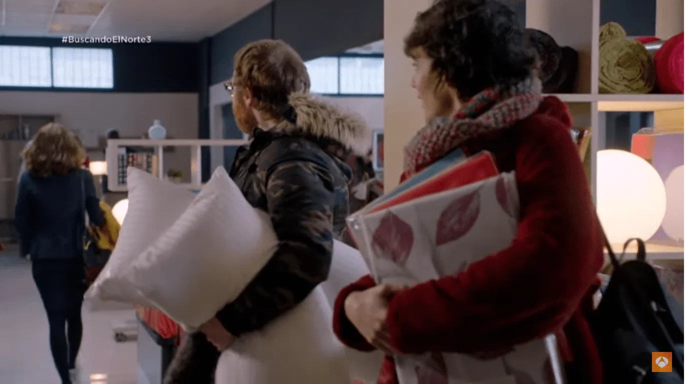 El destino nos sonríe y por suerte, allí mismo hay alguien más. Todo es idílico y el lugar de lo mejor, ya que están en la zona más romántica de los almacenes: la de colchones y sabanas. Al verla, la diseñadora vuelve a ir al ataque: