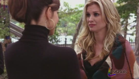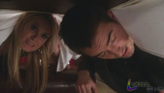 Sam deja su tarjeta de crédito en la mesa y los dos salen por la puerta trasera ocultando la cara debajo de la chaqueta. La verdad es que es una escena muy graciosa y que nos lleva a otra lección lesbicanarias. Si pones los cuernos en público por algún motivo de Karma tu pareja estará casualmente en el mismo lugar que tú a la misma hora que tu