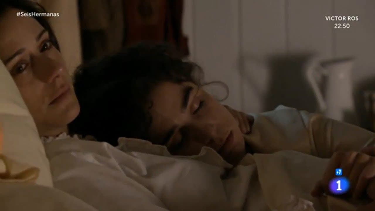 Más tarde, nos muestran a la pareja durmiendo, o por lo menos la maestra, que usa de almohada el pecho de su amada. Se despierta y Aurora le pregunta si ha conseguido ponerse en contacto con el hermanísimo, a lo que ésta le da negativa (no quiere decirle que su hermano es un gili en mayúsculas y que le ha importado una castaña que se esté muriendo). A la enfermera se la ve abatida, puesto que es la única familia que le queda y le añora. Empiezan una conversación que nos deja a todxs con el corazón desgarrado, puesto que se está despidiendo (y no estamos preparadxs para ello todavía). Celia le dice que va a mejorar, que estando en ese hospital seguro que consigue salir adelante, cuando de repente se abre la puerta de la habitación y aparece ¡¡¡EL HERMANÍSIMO!!! :O y las dos se quedan petrificadas en el sitio. Celia decide darles intimidad y sale sin darle un "gracias" o algo por haberse dignado a ir a ver a su hermana.