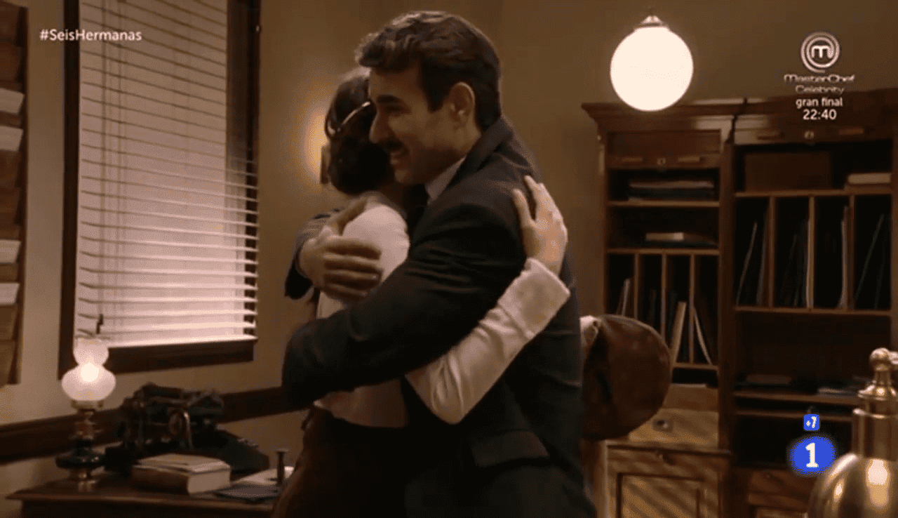 Celia, mientras tanto, va a desahogarse con su siempre compañero Velasco. El pobre lo único que le puede decir es que se mantenga firme y no deje que su novia la vea de capa caída. Mientras se están dando apoyo mutuo, aparece por la puerta del despacho Bruna, la MUJER de Velasco y por fin se conocen. El encuentro es un tanto tirante, parece que las chicas no se han caído demasiado bien… Bruna es un tanto… cómo decirlo, efusiva, y le da un súper abrazote a la maestra que sólo puede poner cara de WTF.
