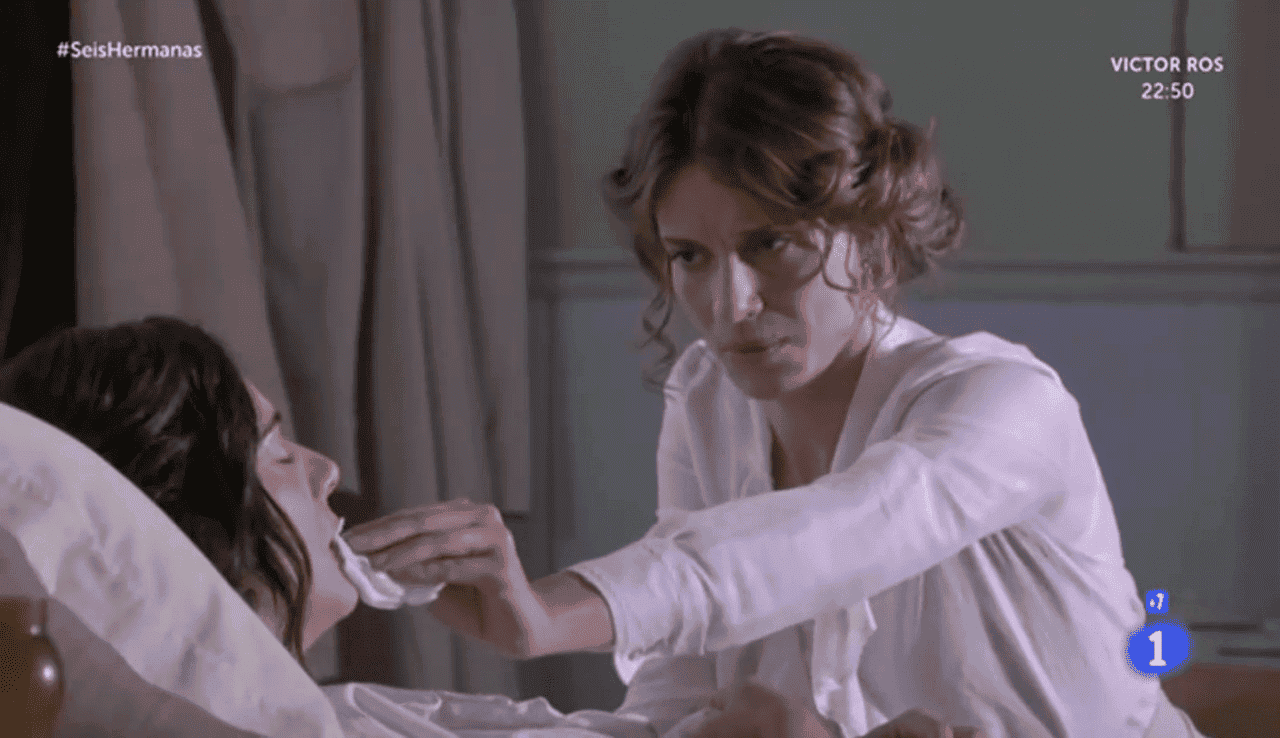 Celia y Blanca se encuentran con el médico por el pasillo, éste no las quiere engañar y le dice que su novia no está muy bien pero que ha hecho bien en traerla de vuelta, ahora queda luchar y ser fuerte para lo que tenga que venir… En la siguiente escena ¡POR FIN vemos Celia y Aurora juntas! Me alegro, porque parecía que no iba a llegar el momento, pero es muy triste por la estampa que tienen (os aconsejo que no dejéis muy lejos los kleenex)