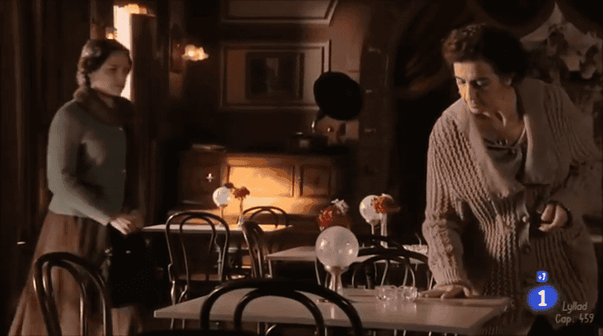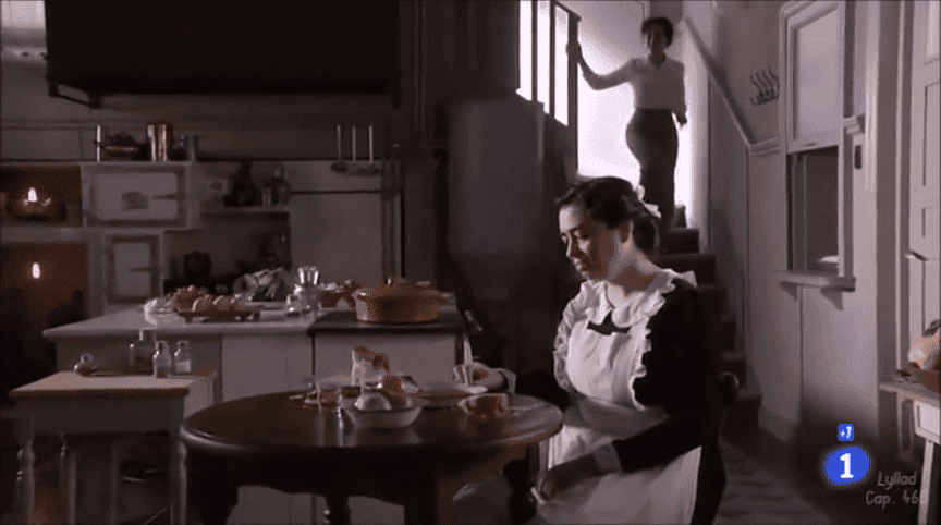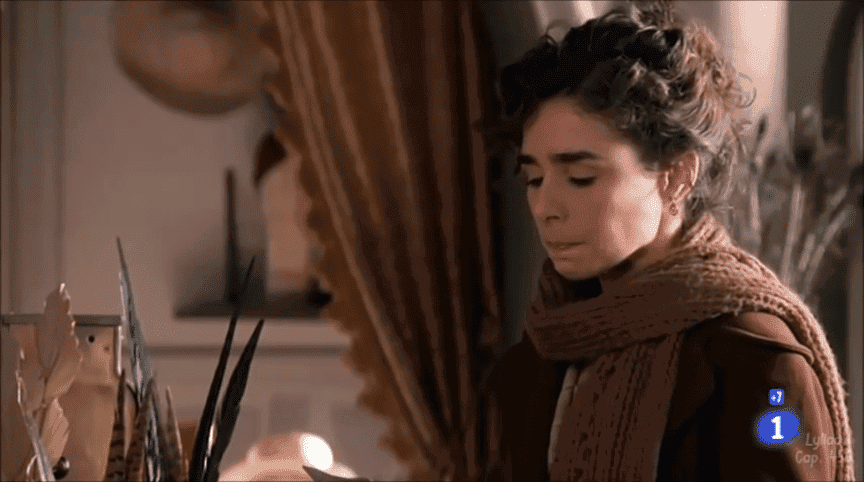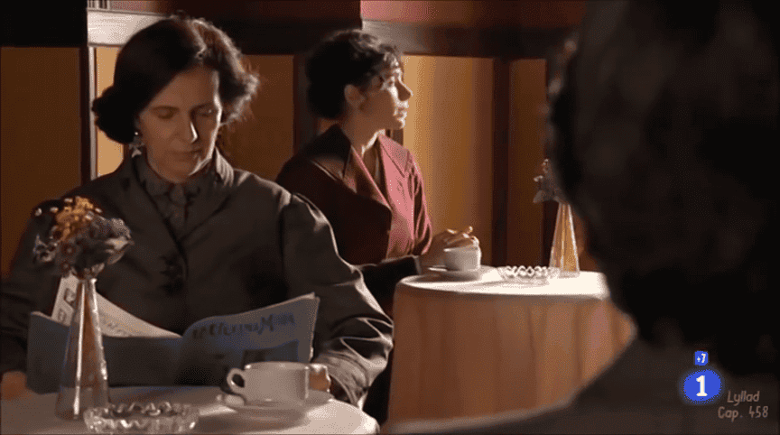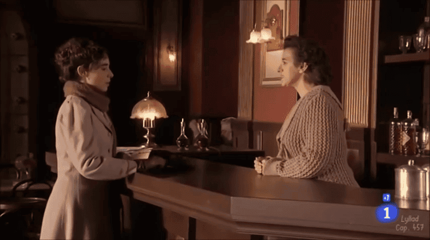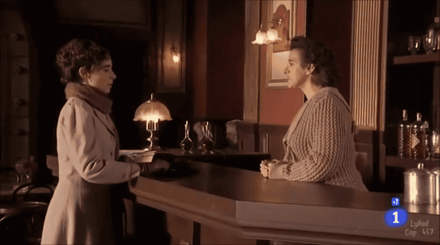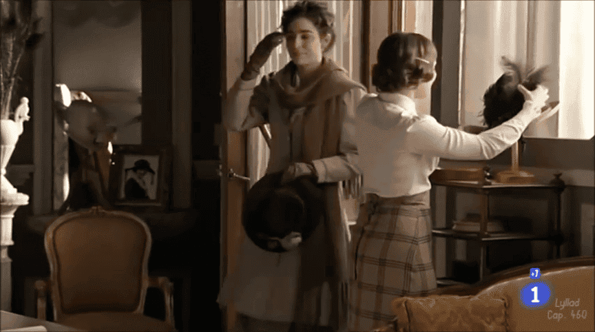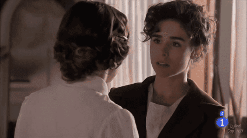 Así que aquí tenemos a la maestra, esperando para ver a Cata. Ésta llega y le pregunta cómo la ha encontrado, por Velasco, claro está. Celia estaba preocupada con todo lo que ha pasado con la guarra y sólo de pensar que le podría haber hecho algo a ella… le revolvía las entrañas. La maestra le pregunta que si se ha ido por lo que le dijo, la costurera le contesta que en parte sí, y porque se había dado cuenta que NUNCA iba a estar a la altura de Aurora.