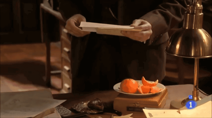 Empieza un nuevo día y Celia acude al despacho de su buen amigo Velasco. El inspector está muy liado con tanto papel, le ofrece asiento a Celia, le retira la silla y la maestra se queda parada "¿Encima de los papeles?" dice… Jajajaja qué cachonda; él, para recompensar, le ofrece mandarina y, como todas vosotras sabréis, Celia (Candela) no desprecia la comida, así que acepta encantada. (Si fuera por Candela, se pasaría TODO el día comiendo, jijijiji). Federico había llamado a Celia para que fuera a verlo, tenía algo para ella. Después de rebuscarlo por toda la mesa en su caos organizado, como dice él, lo encuentra. Se trata de una nota en la que pone la dirección donde está trabajando ahora Cata. Celia se queda más tranquila al saber que está perfectamente. Le devuelve la nota al inspector, se muere por verla pero no cree que sea oportuno, ya que si ha "desaparecido" es porque no quiere verla más. Al final Federico la convence para que acuda a su encuentro, la vida no da tantas oportunidades, y no debería dejar escapar esta por una tontería.
