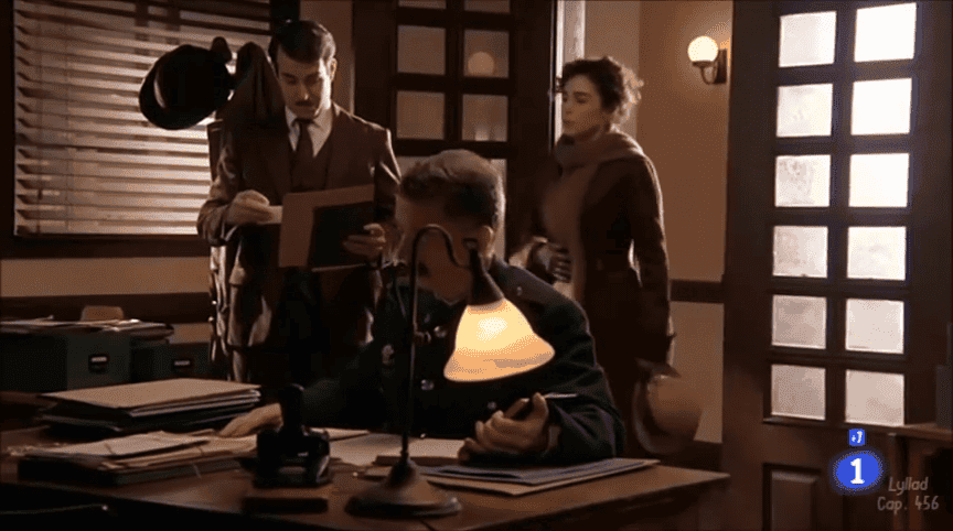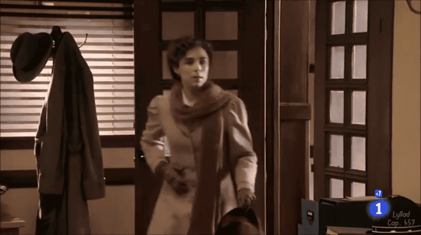 Y tal cual sale de plano en una escena entra corriendo en otra (con tanto correr normal que esté tan delgadilla la niña). A lo que iba, Celia va a contarle a Velasco lo de Marina. El inspector está leyendo detenidamente un informe y casi no le presta atención a la maestra, ésta se exaspera… ¡cuánta paciencia! Al final Celia acaba diciéndole al inspector que como Marina le haga algo a Cata, la mata (jajajaja… me encanta la forma que tiene de decirlo). Al final, Velasco le cuenta a Celia que Benito ha despertado y ha confesado que Luis intentó matarlo, siguiendo órdenes de Marina, así que el informe era para ir a detenerla. Celia está fuera de sus cabales al ver que Federico no hace nada, así que decide ir ella misma a casa de Marina; justo en ese momento suena el teléfono, es la confirmación para que Velasco pueda ir a detenerla, y claro está, Celia se va con él.