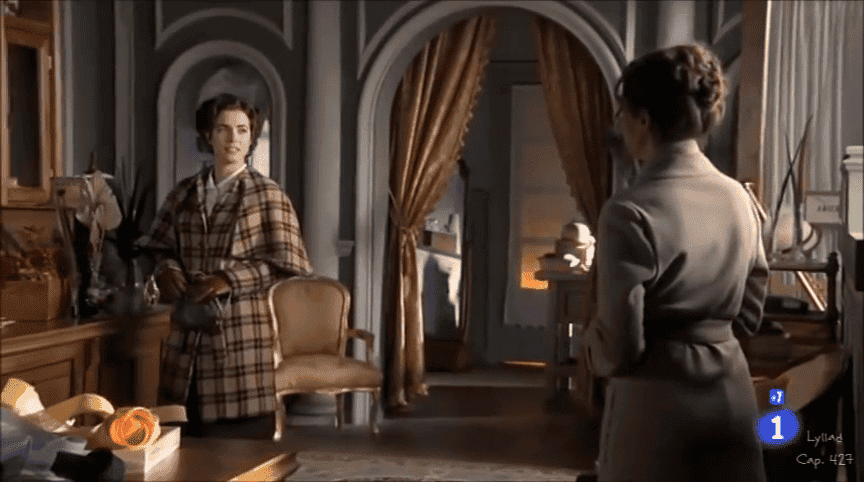 En Villa de París, Cata y Celia están hablando con uno de los cuñados de ésta última (sigue siendo su cuñado, ¿no? A todo esto, ¿Celia lo sabe?) que me distraigo… están contándole lo que quieren hacer con el juicio de Úrsula, al abogado le parece una buena idea, pero les dice que es muy difícil que se pueda llevar a cabo, ya que para ser jurado se han de cumplir una serie de requisitos y , por desgracia, ninguna mujer los cumple, por lo que les recomienda que lo mejor que pueden hacer es que intenten que tenga una buena opinión pública.