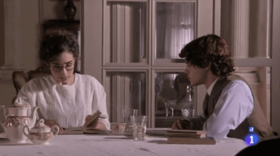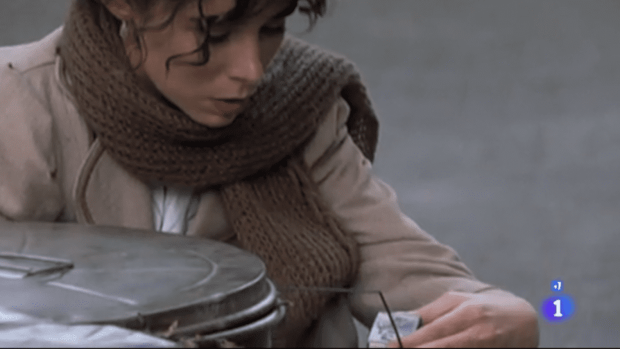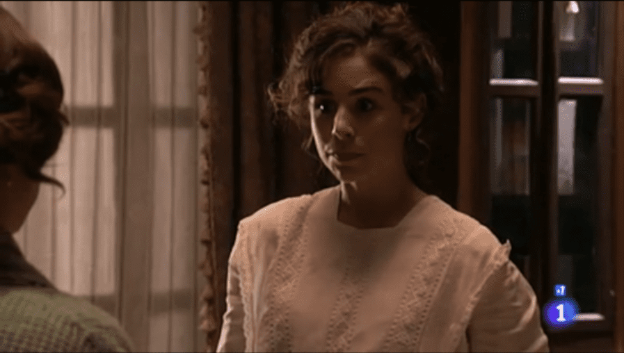 Al rato, vemos a Celia repasando el discurso cuando llega Cata con las octavillas recién sacadas de imprenta. La maestra, se sube a un cajón que tenía preparado y empieza con el discurso mientras Cata se dedica a repartir las octavillas entre las presentes. En imágenes intercaladas con el discurso de Celia, se ven unas manos y una bomba meterse en una caja y acto seguido dejarla a un lado de donde está nuestra chica hablando. Cata se pone delante de la caja para que nadie la vea, y pienso ¿de qué coño va esta tipa? ¿No le daba miedo poder hacer daño a alguien? ¿Actúa a espaldas de Celia? ? y cuando acaba la escena ¡¡¡vemos como Celia está compinchada con el asunto!!! ¡Moooooadre del amor hermoso!