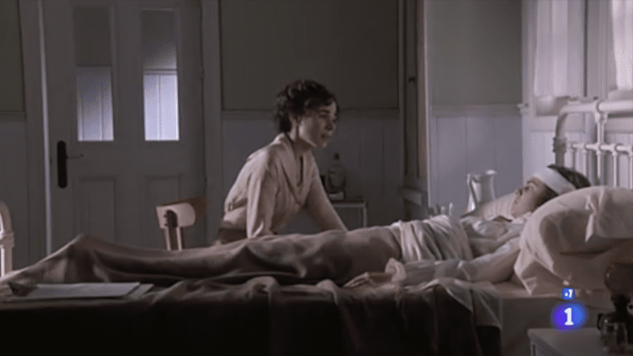 A la mañana siguiente, Celia se acerca al hospital para saber cuál es el estado de su amiga; Cristóbal le dice que ha pasado toda la noche inconsciente, pero que no la han operado. Al médico lo que realmente le preocupa es que la costurera pueda tener heridas internas. También le comenta a la maestra que la policía está investigando lo ocurrido y que creen que pueda ser un golpe anarquista, con lo que Celia flipa un poco, pero también es un alivio… De repente, Benito entra en la habitación y el médico se va a seguir con la ronda. El chico le pide explicaciones a la maestra, él sabe que ha sido un atentado sufragista, y ella se lo toma fatal, porque se lo toma como si la estuviera culpando a ella directamente, le hace creer que Cata está así por su culpa, pero enseguida Benito le hace ver que no, que él está allí para ayudarla (está enamorao hasta las trancas y haría lo que fuera por la maestra) Celia le dice que si de verdad le quiere ayudar, lo que tiene que hacer es irse a casa y no hablar con nadie de lo que han dicho en esa habitación.