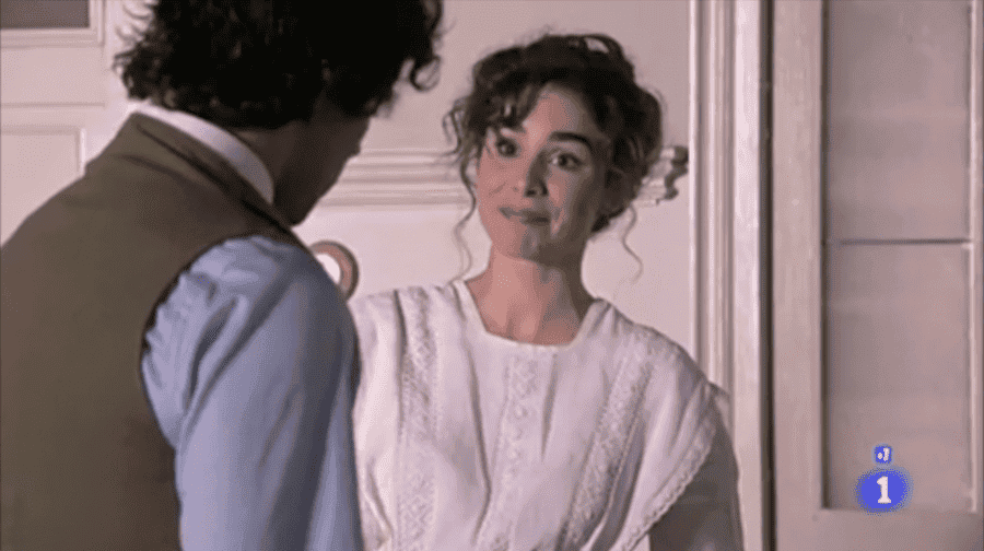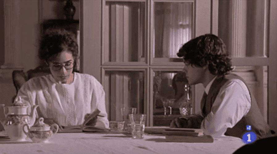 Más tarde, Benito está rebuscando comida en la cocina de casa Silva cuando Celia lo pilla con las manos en la masa. La chica lo estaba buscando para darle una clase particular, pero el niño está pensando en otra cosa precisamente, más bien en irse de esa ciudad forever. (¿No me digáis que aunque estuviéseis planeando lo más malvado que se os ocurra, Celia pone esta carita y lo dejaríais todo por estar con ella? ¡Moooooadre mía par favar!?) Celia le dice que por muy lejos que se vaya y ponga tierra de por medio, no le va a servir de nada para solucionar sus problemas. También le dice que se lo piense bien y que no actúe por un impulso pasajero, que igual luego se arrepiente. El chaval le dice que está seguro de irse y la maestra sólo puede decirle que no la olvide y le escriba cartas. (Yo si pudiera, le mandaba una cada día diciéndole ¡¡cuánto la quiero!! eeehhhhh… ¡NO!) Luego claro, Celia va y le dice que lo mejor que puede hacer es quedarse y que ella le ayudará a estudiar y encontrar su vocación y claro, el Benito tonto no es y se queda sólo por la bella maestra (¿¿¿y quién no???) “Benito, la vida sólo tiene sentido si nos mueve una ilusión, y huir no es ilusión para nadie” toma ya la señorita Celia y para rematar la escena le dice que si todavía se quiere ir que le dice dónde esconde Elpidia el chorizo bueno, el del pueblo, pero que si se queda ¡se pasa toda la tarde con él! ¡Qué queréis que os diga, yo donde se plante una buena sesión de Celia Silva, que se quite hasta todo el oro del mundo de delante!