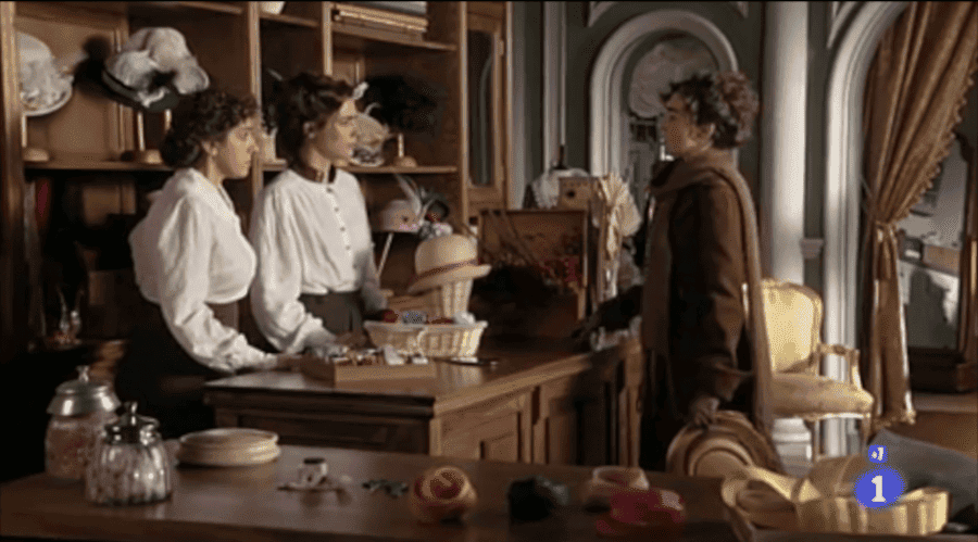 Por la tarde, Celia se acerca a la Villa de París donde están la usurpadora y Antonia hablando. La maestra se ha acercado a informarles del motivo por el cual Cata no ha ido a trabajar. Úrsula le da las gracias a la maestra por haber ido a informarlas, pero sobre todo, por haber ido a la tienda.