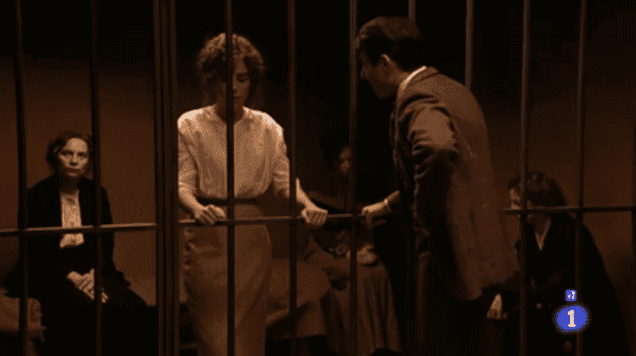 Ahora bien, los espectadores estamos tan “contentos” viendo las demás tramas cuando Diana recibe una llamada en la casa familiar y le comunican que su queridísima hermana ¡¡¡Celia ESTÁ EN LA CÁRCEL!!! ¿WHAT? ¿Cómo hemos llegado a esto? Pero sí, así es, Celia y el resto de sufragistas se encuentran encarceladas, según Celia, la policía no tiene pruebas contra ellas, pero seguro que se las inventan. En la escena está hablando con Velasco, que intenta meterla en vereda, pero no hay forma, la maestra tiene sus convicciones muy sólidas y nadie va a conseguir que cambie de opinión.