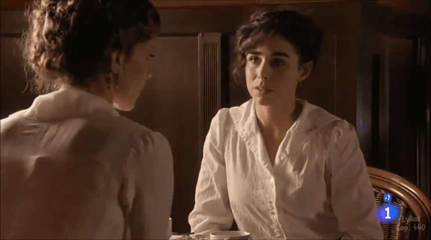 A la mañana siguiente, Celia está en el Ambigú (yo creo que vive allí y no nos lo quieren decir, jijijiji) Cata llega tarde a una reunión sufragista; la maestra ha mandado a casa al resto de compañeras ya que sus planes se han visto truncados, la policía se ha enterado de lo que iban a hacer, así que, de momento, mejor aplazarlos. El juicio ya ha empezado y Úrsula sigue sin aparecer. Cata le cuenta a Celia que el bebé, Benito, está deprimido porque ha perdido su pastizal. La maestra NO QUIERE meterse en su "relación" pero hace el esfuerzo de escuchar a su AMIGA y aconsejarla.