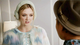 El caso es que, por no entrar mucho en la trama de la historia, lo que ocurre es que hay un asesino (o dos, o vete tú a saber cuántos) que se viste con el traje de la mascota de la universidad, un tal Red Devil. Vamos, que va vestido de diablo y se carga a todo quisqui. No os quiero destripar todo y me quiero centrar en todo lo que mola Chanel Nº3. En el primer capítulo ya se cargan a su amiga Chanel Nº2 y a una de las que están de prueba para entrar en la hermandad. Pero aquí son todas pavas perdidas y, en vez de escapar o llamar a la policía, deciden tomárselo con calma y ocultar el cuerpo de su colega muerta. Sobre todo la jefa Chanel, que pasa bastante de todo y está más preocupada porque van a entrar todas esas "losers" en Kappa Kappa Tau, y a quien sus amigas miran así: