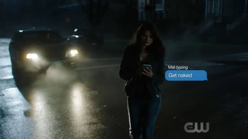 Nuestro episodio comienza con Melanie, nuestro personaje lésbico dirigiéndose a casa de su novia. No sin antes enviarle un mensaje que dice: "vete desnudando". No sé ustedes, pero este inicio tiene buena pinta. No todas las series empiezan con sexo lésbico.