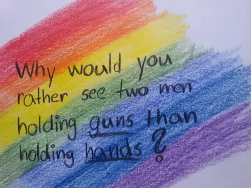 "¿Por qué prefieres ver a dos hombres portando armas que tomados de la mano?"(Vía clairewel.tumblr.com)