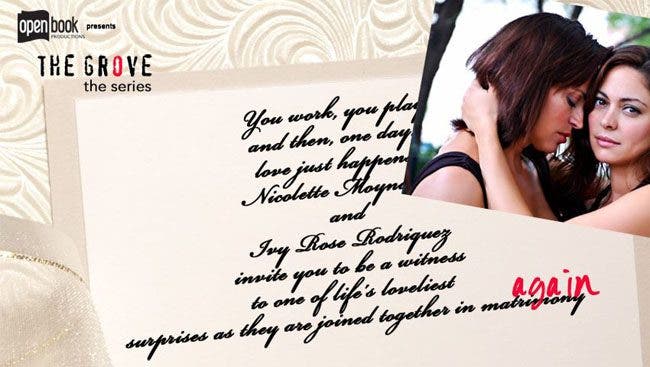 Las hemos visto como pareja en Otalia y en Venice y todo parece indicar que en The Grove no será diferente, de hecho la historia comenzará con una boda, precisamente la de Cordelia Nicolette (Chappel) y Ivy Rose (Leccia) una pareja de chicas que llevan muchos años juntas y casadas aunque no legalmente, pero que gracias a que la proposición 8 ha dejado de existir deciden dar el paso de manera legal con una segunda fiesta.