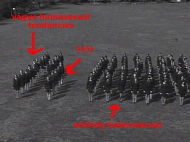 Kinsey propuso primero la noción de que algunas personas aprenden mejor a ser heterosexuales que otras. Y que, por alguna razón desconocida, las chicas lo hacen mejor que los chicos.