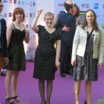 Finalmente, después de una hora en el lacerante sol, Kasia, Lucy, Dennis (Hotte) y Franciska (Sophie) aparecieron y se dirigieron a la alfombra roja.Dennis que había twitteado por la mañana que tenía que llevar primero a Kasia al barbero, parecía recién llegado de las Vegas, en esa manera dulce y geek que tiene con pajarita y todo, mientras que Kasia llevaba de maravilla ese look al estilo Marlene Dietrich en los treintas.
