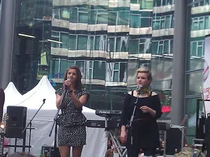 Después de que se terminara el evento, hubo otro en un centro comercial de Berlín, el mismo donde habían hecho un flashmob unos meses antes. Así que las lesb…ejem…fans, salimos corriendo para atravesar la ciudad y alcanzar a ver a Kasia y a Lucy. Fue como una fiesta. Era un desfile de moda junto a modelos oficiales, ellas llevaban ropa deportiva y algunas prendas de Quicksilver. Desfilaron dos veces. Estuvieron geniales e incluso flirtearon un poquito entre ellas.