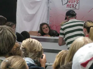 El caso es que este pasado 7 de Mayo se organizó un gran evento para todos los fans de Hand aufs Herz. Y por supuesto allí estuvieron tanto Lucy Scherer (Jenny) como Kasia Borek (Emma) para cantar, darles autógrafos a los fans y lucir esa linda sonrisa que nos ha conquistado a todos. Y señoras, los brazos lesbicanarios son muy largos, y allí estuvo la mismísima Amidola para disfrutar de un rato con las chicas y para contarnos lo geniales que son las chicas.
