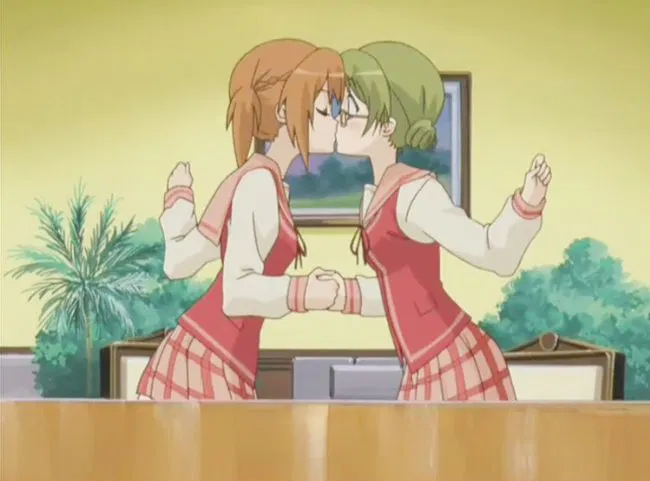 En el momento en que Hazumu está abrazando a Yasuna para que se calme, llega Tomari, que, desde lejos, la escena que ve es más bien calentita.