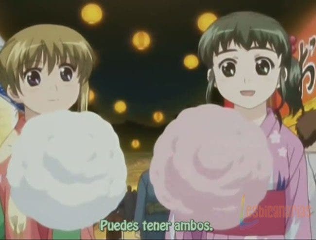 Tomari-chan, que ha prometido que llevará yukata, se va a comprar uno (la mujer no es muy “femenina” que digamos) y en la tienda se encuentra con Yasuna, que, al descubrir lo que ha ido a comprar, le lleva a su casa y le presta uno muy mono. Entonces, después de compartir sus impresiones sobre Hazumu, y de agradecerse las excursiones a la playa, pruebas de valor y demás, deciden que irán juntas al festival. Ohhh poliamor…!!