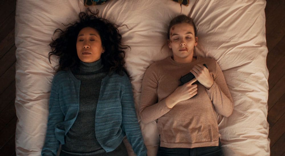 Villanelle mueve ficha y se gira para acariciar a Eve, que le dice que jamás ha hecho algo así. A la rubia no le preocupa porque ella tiene claros los siguientes pasos a seguir. Pero entonces se muestra sorprendida y todos nos damos cuenta que Eve le está amenazando con un cuchillo en el estómago.