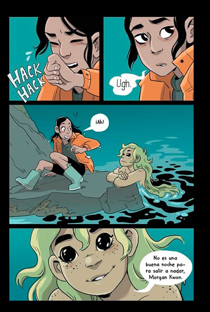 Por las noches se escapa al acantilado a llorar, pero con tan mala suerte que una de esas noches estaba lloviendo y se resbala por una de las rocas, cayendo así al mar. ¿Será así su muerte? En unos segundos se plantea toda su vida, como bien dice, le gusta tener su vida guardada en cajas, pero las cajas han caído al océano y todo se está desparramando. El plan que tenía de ir a la universidad, salir de ese pueblo y por fin ser ella misma no parece que se vaya a cumplir. Pero de repente aparece una chica desde las profundidades del mar y la rescata. ¿Te acuerdas de mí? Le dice la chica rubia… Morgan cree que todo es consecuencia de lo que le acaba de suceder por lo que se deja llevar y acaba besando a esa misteriosa chica que le resulta tan familiar.