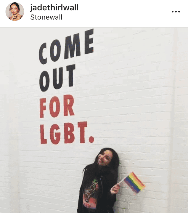 Jade Thirlwall es sin duda la referencia del grupo en cuanto a soporte a la comunidad. Es frecuente verla acudir a actos y entregas de premios LGBTQ+, así como es habitual que en su Instagram haya mensajes de apoyo, defensa y/o animando a sus fans o a la comunidad.