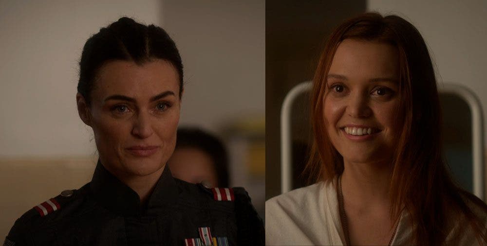 Me gustó mucho esta escena porque más allá de lo que se dice en las palabras está la interpretación de los gestos de las dos actrices que ¡son buenísimas! Para empezar, desde que llega a visitarla, Alder está relajada. Sí, tiene la misma postura rígida de siempre, pero la comisura de los labios casi la lleva a sonreír y se nota que se preocupa por Tally.