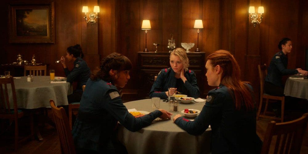 Luego las vemos a todas en una sala en la que Alder les de un discurso especialmente dirigido a ellas tres, en el que les recuerda la importancia de su entrenamiento, sobre todo ahora que La Camarilla está rondando.
