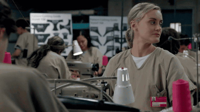 En el taller, Piper sigue robando bragas de las que quedan defectuosas y el personaje de Ruby Rose (aka Stella) se da cuenta. Piper le intenta explicar lo de las bragas usadas y a ver cómo explicas esto a alguien sin sonar como una lunática. Pues ojo, que surge efecto y en la próxima escena Stella le enseña que lleva puestas unas y le guiña un ojo. ¿Pero esto qué eeeeeeeeeees?