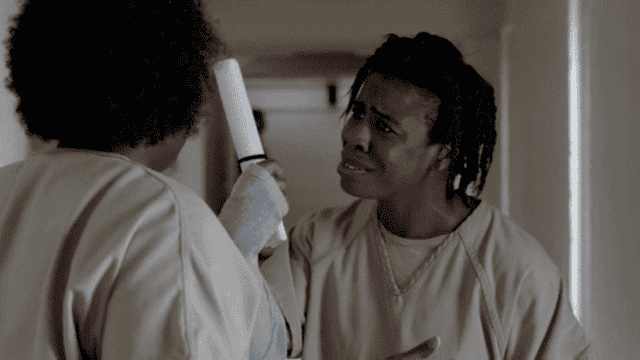 Poussey: Es rara de cojones, pero me atrapó. Me puse a leerla con un poco de alcohol y me olvidé de este lugar. Hasta perdí la noción del tiempo… o me desmayé por la borrachera.