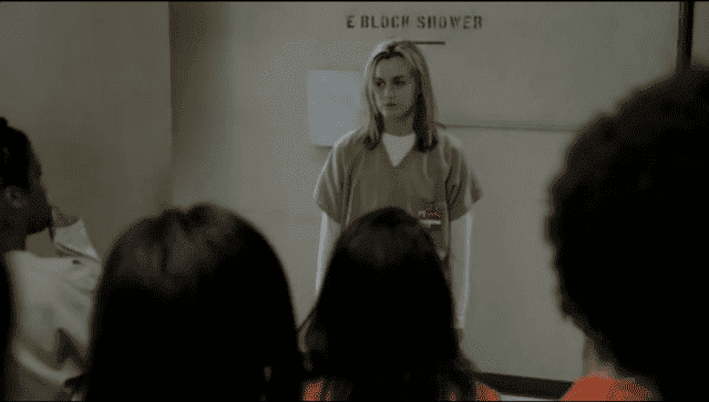 Mientras a nuestra rubia la dejan a solas con una de las chicas de la visita que se ha estado haciendo la dura todo el tiempo, realmente Piper no quería hacer el paripé como el resto pero cuando la muchacha la llama P*** lesbiana, el lado más oscuro de la rubia sale a relucir y deja destrozada a chica. Nadie j**** a Chapman.
