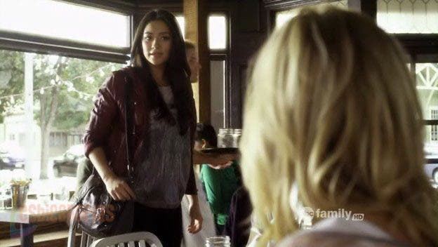 Bienvenidas pequeñas lesbicanarias (a las grandes también les damos la bienvenida que aquí entra todo el mundo) al pequeño mundo de Pretty Little Liars. Y nuestro capítulo comienza con la buena de Spencer en plan paranoico, porque desde que es sospechosa en la muerte de Alison la pobre lo está pasando fatal. Las chicas están tomando algo y hablando de todo lo que sucede alrededor de Spencer cuando esta cree ver que alguien las está observando… ¿unos maniquíes? (nos queda la duda porque o yo estoy perdiendo vista por la edad o no reconozco a la persona que ve Spencer). Bueno, el tema a tratar es si Caleb sabe algo más que pueda ayudar a Spencer. Y Hanna se ofrece de voluntaria (con mucho sacrificio y nada de resquemor) para hablar con Caleb e intentar saber más sobre qué trama Jenna.
