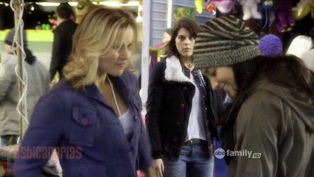 Y nuestra Emily se cruza con Paige que ha conseguido entradas para ese concierto pero parece ser que también irá Troy. Paige quiere tener como un seguro para que su papá no se entere de lo suyo con Emily (así no Paige, así no vamos bien). ¿Me lo parece a mí o Paige bizquea cuando miente? No seré yo la que diga nada porque también bizqueo (pero no cuando miento eh? Si no cuando estoy cansada). Parece que Paige le ha dicho que sí a Emily en su ofrecimiento de hablar juntas con alguien del grupo de apoyo para salir del armario con su padre pero no parece nada convencida.